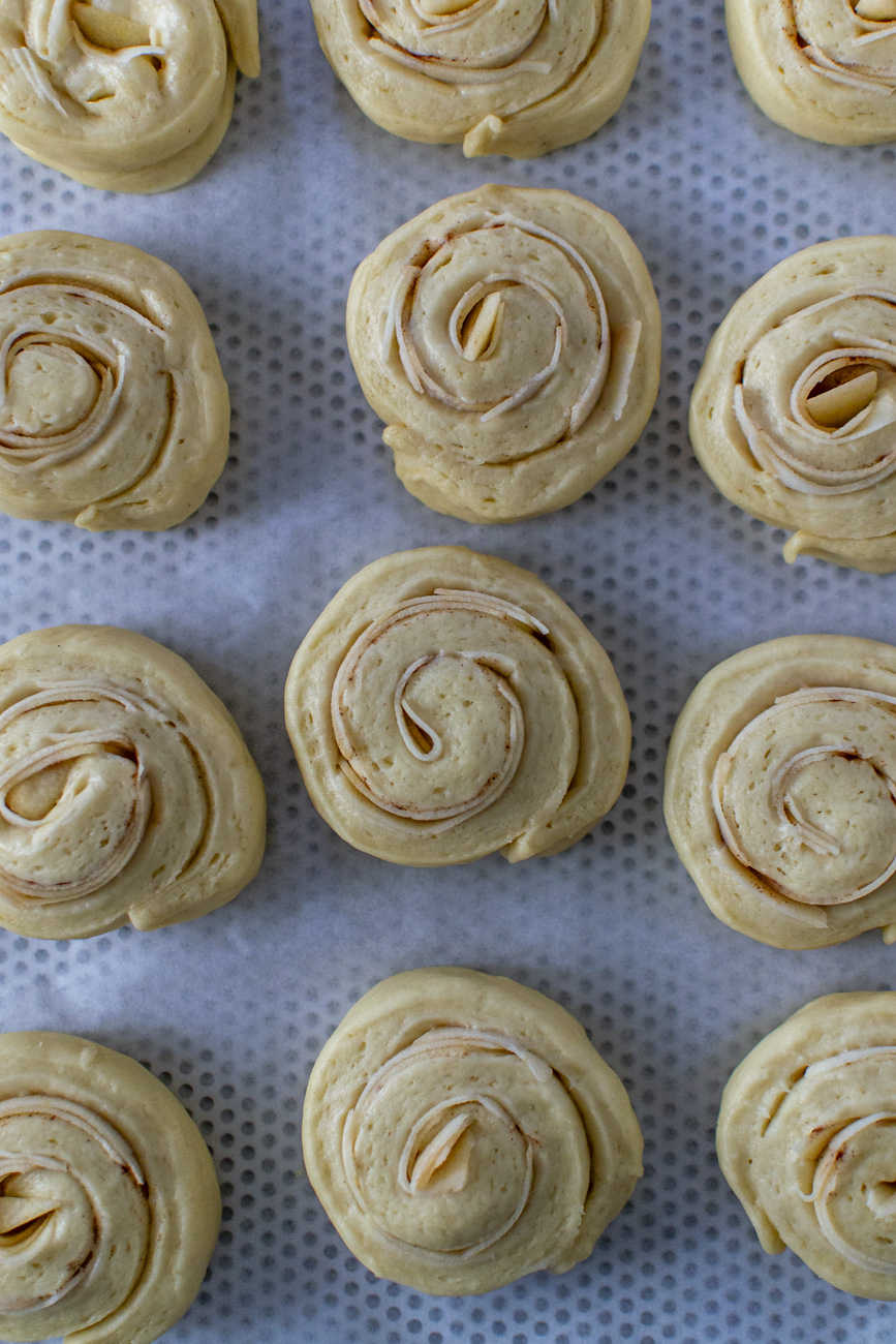 minutesDe petits beignets roulés moelleux et garnis à la pomme. Le temps de préparation n'inclut pas le temps de pousse.