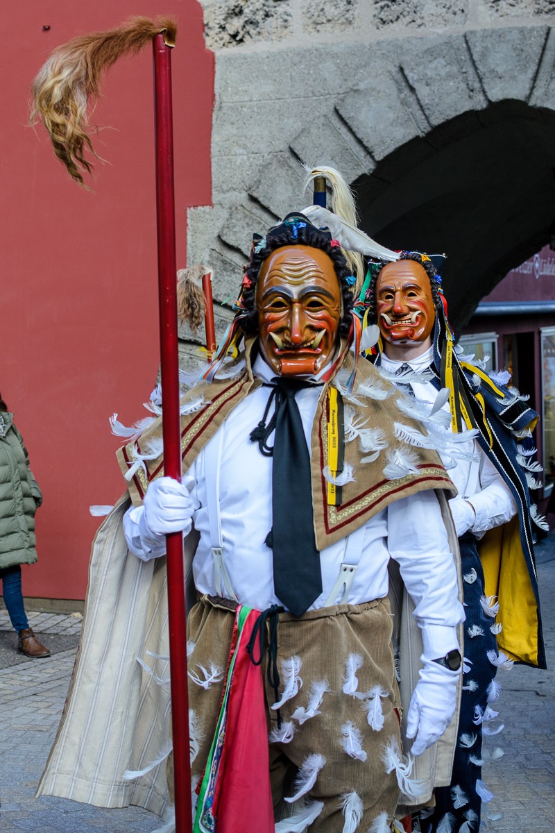 A chaque ville ses rites et traditions, à Rottweil les fous ont un salut différent et viennent vous chatouiller avec une perche. La renommée du Carnaval de Rottweil, appelé Rottweiler Narrensprung ou Rottweiler Fasnet, dépasse largement les frontières du Bade-Wurtemberg. Parmi les défilés du carnaval souabe-alémanique, c’est l’un des plus somptueux et des plus anciens. Une attraction touristique qui attire près de 20.000 visiteurs chaque année. Rottweil est une petite ville qui se situe à environ 2h de Strasbourg. Le grand défilé des fous (Narrensprung) a lieu le lundi (Rosenmontag). Le coup d’envoi est annoncé à 8h pétantes par le carillon. Séances de rattrapage le Mardi-Gras à 8h et à 14h, trois chances de découvrir ce superbe carnaval historique et sa galerie de personnages. Le cortège inonde littéralement les rues. Ils sont des milliers de carnavaliers à défiler et à sautiller, près de 4000 fous.